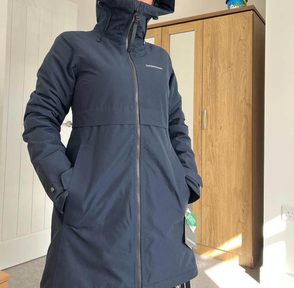 It's a joy to wear - it's warm and truly windproof, not just against gusts of wind, but also against sneaky draughts that try to get up your sleeve or down your neck. And it's smart. I've got the green one, now I fancy the red one!