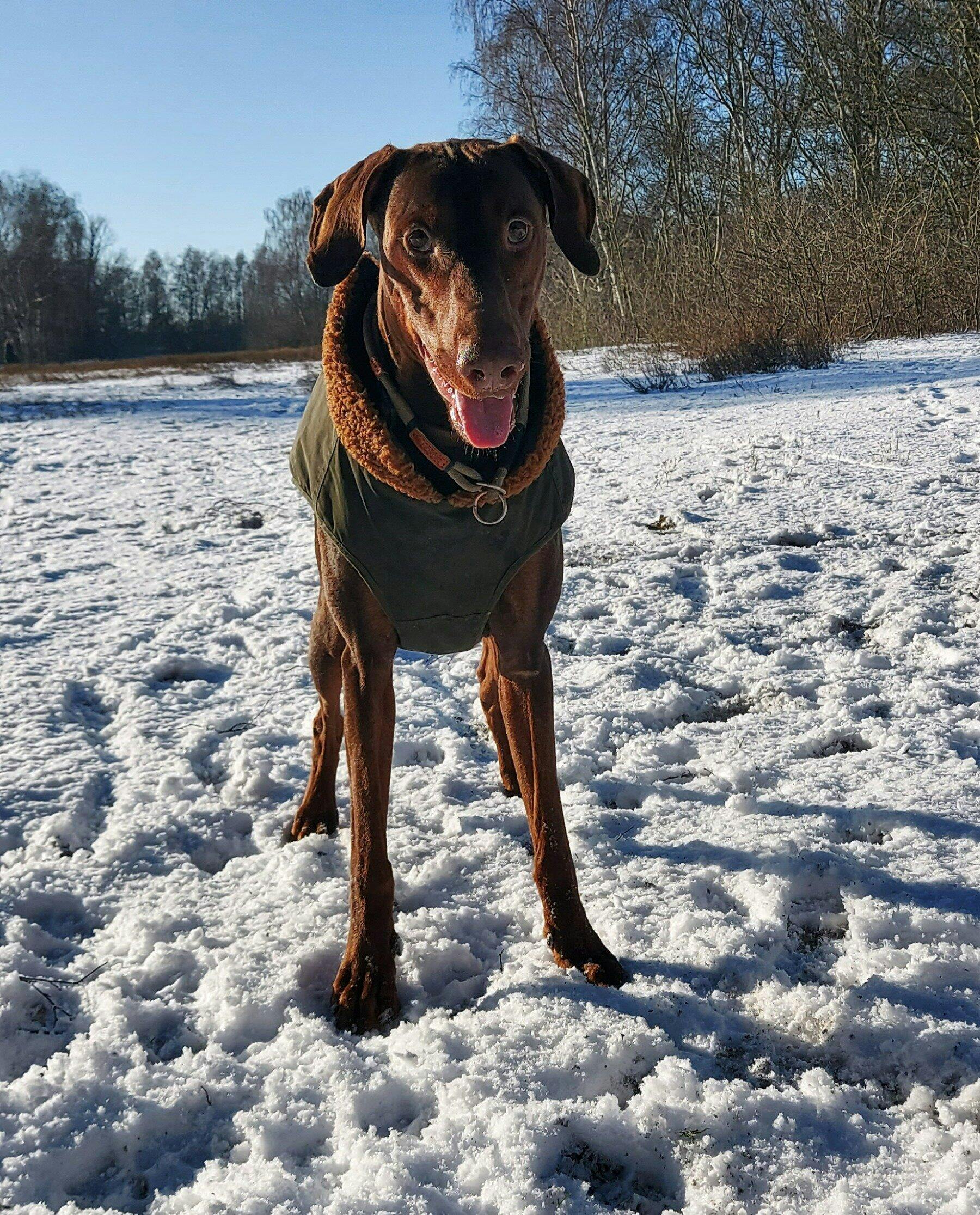 These beautiful pants are a perfect product, functional, warm, and sturdy. (I already had the matching jacket.) Now I need an outfit for my Doberman; only the best for him.